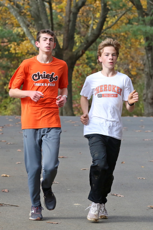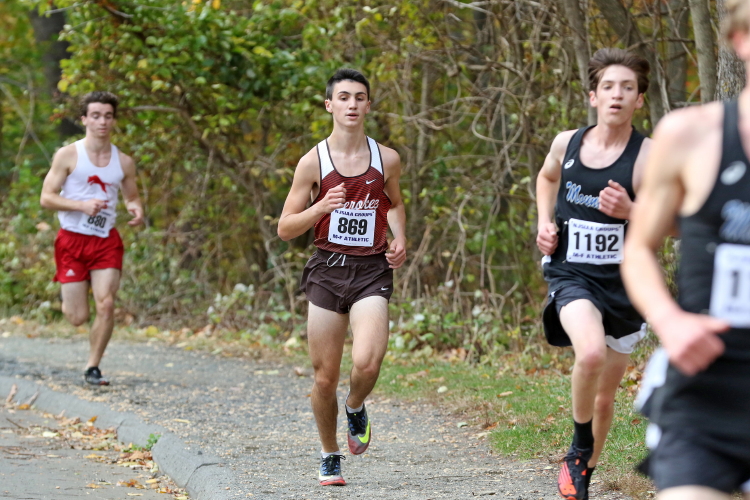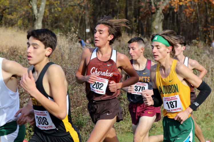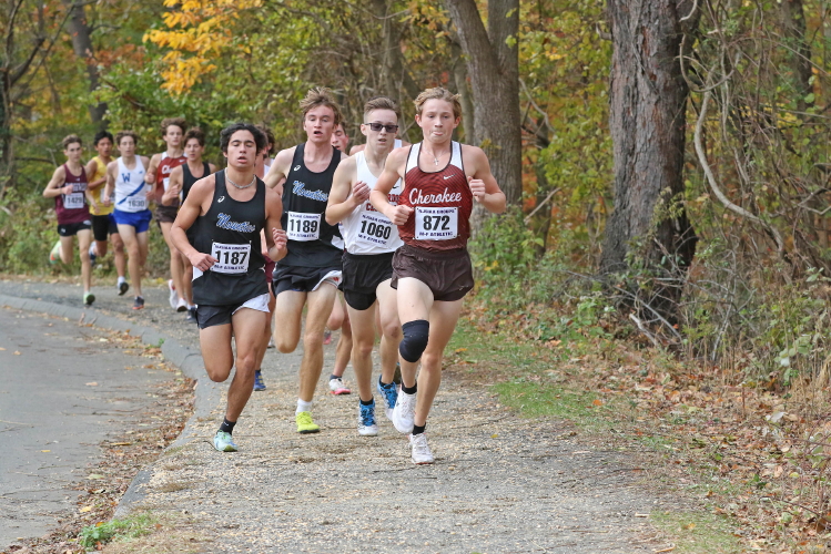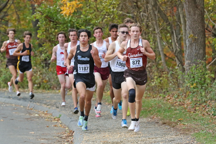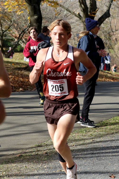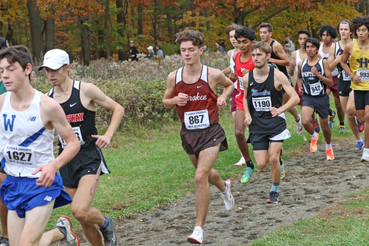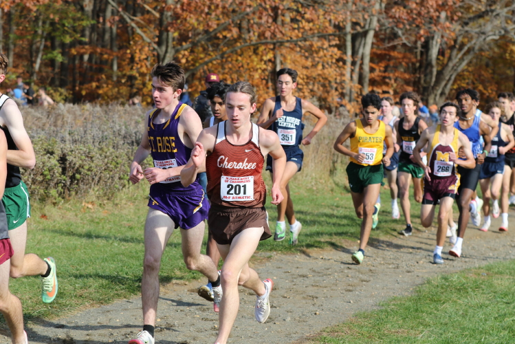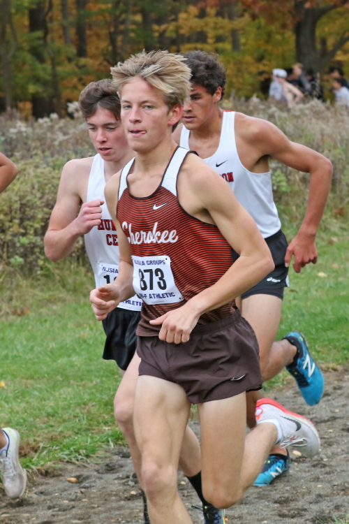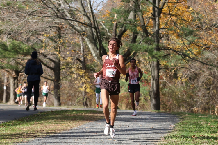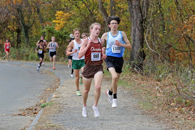 "Patrick Ditmars was, once again, Cherokee first finisher, placing 14th in the field of 147 runners! Patrick's time of 16:30 was an eight second PR at Holmdel and moved Patrick up to 15th on the All-Time Cherokee Holmdel List! Conor Jacob continued his excellent running with a huge 53-second Holmdel PR of 16:33, good for 2nd on the team and 16th place! His time now puts Conor at 18th on the All-Time List! Our 3rd man, Bradley Popler, PR'd by 18 seconds to place 39th and just miss dipping under the 17:00 barrier! His time of 17:02 ties Bradley for 41st on the All-Time List, with Justin Detone in 2014 and Jon Conn in 2017! After Bradley, we had a gap of 25 seconds and twenty places back to our 4th man, Bobby Poplau, who, although struggling with the knee problem, still managed to drop his Holmdel time by 28 seconds from Shore Coaches earlier this year! There was another 22 seconds and twenty places back to our 5th man, Joe Natoli, who improved his Shore Coaches' time by five seconds! Tommy Bromley was our 6th man and just missed getting on the sub-17:00 All-Time List with his time of 18:02; while sophomore, Andrew Free's time of 18:25 was unexpectedly 3-seconds slower than his PR from the Shore Coaches Meet.