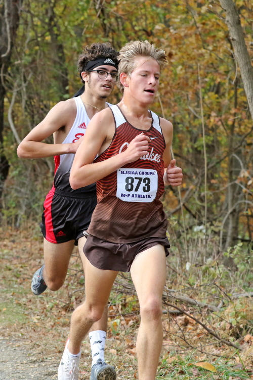 "Behind Patrick, Conor Jacob was having a great race of his own! For the third week in a row, Conor came through big-time! This week, he managed to knock 14 seconds off of his time from the Group 4 Meet to place 30th in an extremely deep field! Conors time of 16:19 moved him to # 13 All-Time on the Cherokee Holmdel list, just in front of three-time Sectional Champion, Alex Yersak, who ran 16:21 for seventh in the 2007 Group 4 State Championship race! Both Patrick and Conor were, deservedly, selected to the All-South Jersey Team voted on by the South Jersey Coaches Association members the day after the Meet of Champions!