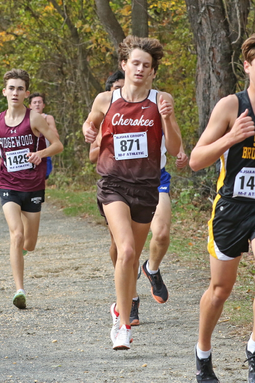 "Coming off of the Group 4 State Meet, we knew that the key to placing higher this week would be to tighten the gap between our 3rd and 5th runners. Our first three runners made that more difficult by running so well! Patrick Ditmars, as he has done all season, led the way for the team! He dropped 22 seconds off of his time from the Group 4 State Meet to finish 18th overall and make the podium! Patrick's time of 16:08 puts him at # 6 All-Time on the Cherokee Holmdel list, just ahead of our first state champion, Joe Halin, who ran 16:09 to win the 1999 Group 4 State Meet!