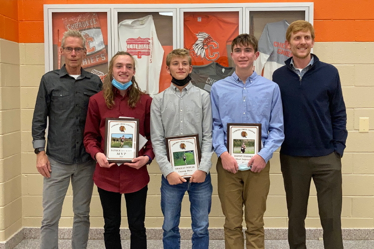 Congratulations to everyone and thanks to some very special people who supported the team along the way. Thanks to Coach Shaklee and Coach Thompson for their dedication and expertise! Thanks to Cherokee's Athletic Director, Mr. Scott Agnew, who works especially hard for our sport! Thanks to the parents who gave so much to the program and supported their sons in many personal and practical ways, including vocal support at meets, endless transportation duties throughout the year (not just the season); suffering with them when their races don't go as desired; catering the banquet . . . !