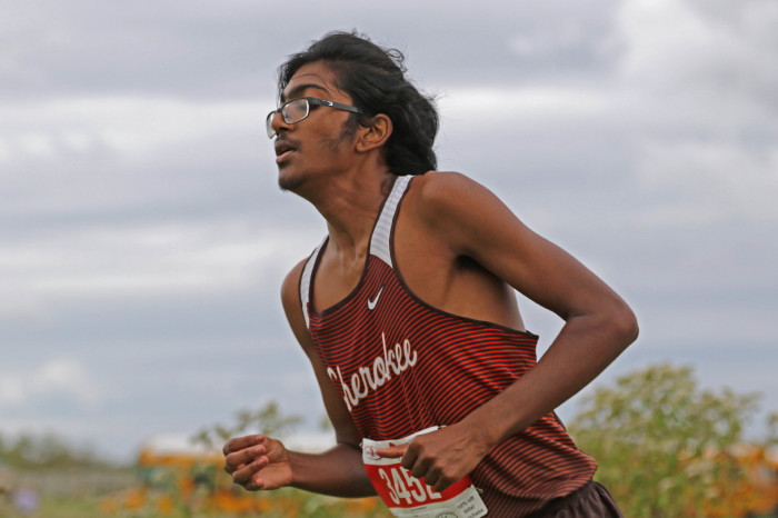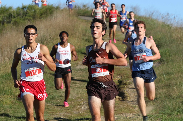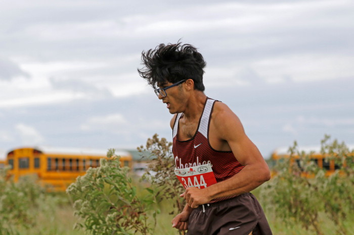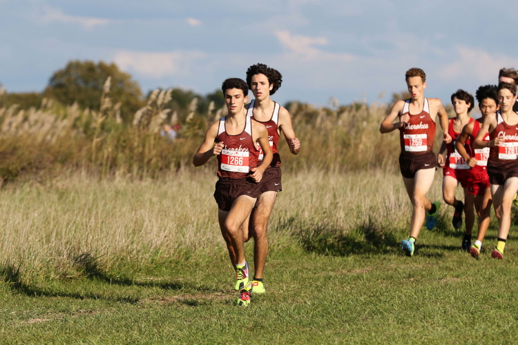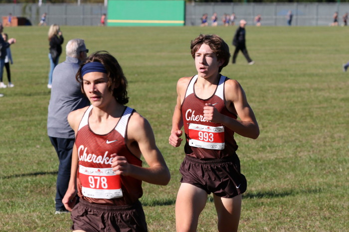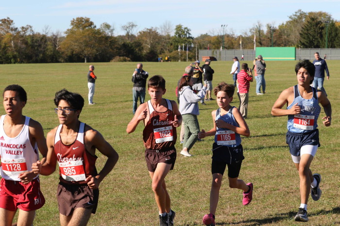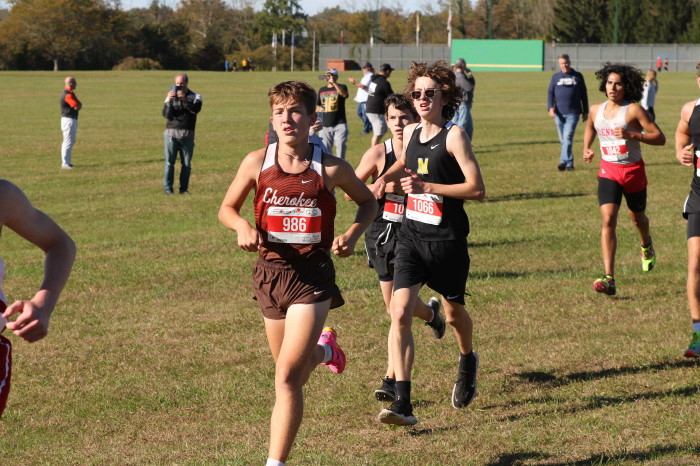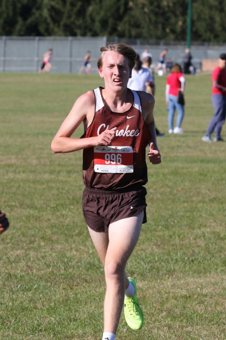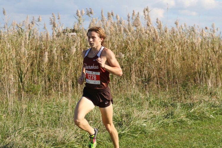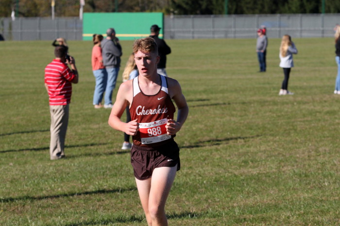 "The Junior Varsity squad was first and they absolutely devastated the field, taking the first 9 spots and 12 of the first 16! I highlighted Junior Varsity because this was a really good Varsity team and, if they were in the championship race, they would have finished a close 3rd to Shawnee! Enzo Corona, Dom Pileri, Silas Matteson, Tate Midora and freshman, Sean Sooy all ran between 17:14 and 17:54 to take the first six spots! Also coming in before anyone from another team were Rory Carroll, Luke Reistle and freshman, Gavin Danielewicz in 7th, 8th and 9th! Behind that group, the other members of the Cherokee team all ran well! Everyone who ran the meet last year improved their times this year! Some, like Sam Wright and Josh Lowery, by almost three minutes!