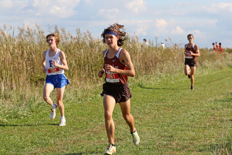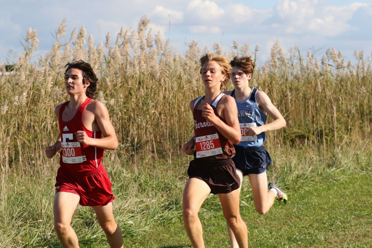 "Liam Tindall and Logan Bromley were next, taking places five and six, both running course PR's! Freshman, Ben Realley completed the scoring for the team, placing tenth with a big PR! Behind Ben R, Ben Weiner and Dom Pileri both placed in the top twenty (16th and 19th) as our sixth and seventh men! Only two other teams had more than one runner in the top twenty - CH East, six, and Paul VI, two.