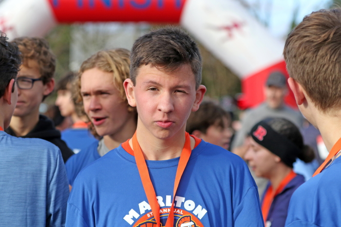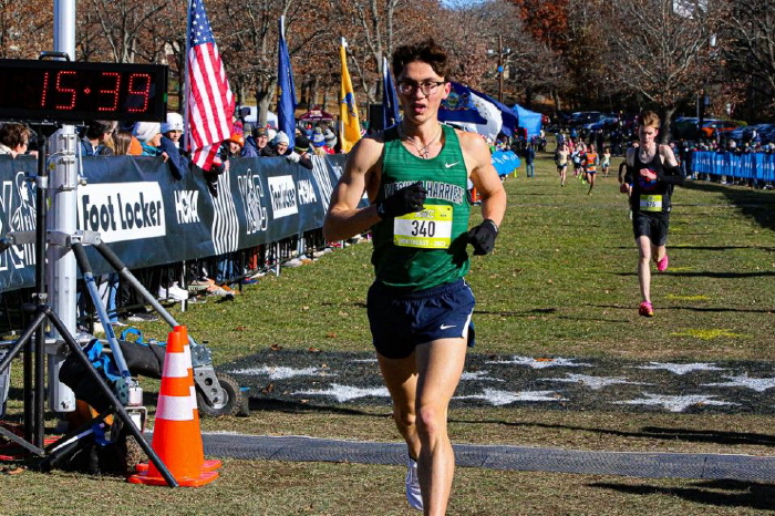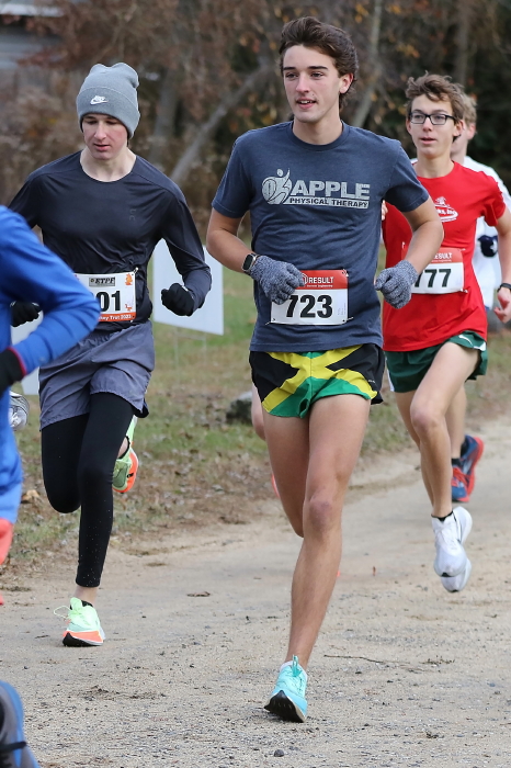 Alum Jack Shea '17 dominated throughout, taking 1st while clocking 14:32 (4:41 pace), followed in 3rd by young Jack Tindall ('28) in 15:29 (5:00 pace), in 4th by Liam Tindall '25 in 15:31 (5:00 pace); in 5th by Mike Zurzolo '17 in 15:41 (5:04 pace); in 6th by Sean Sooy '28 in 17:02 (5:30 pace); in 7th by Silas Matteson '24 in 17:06 (5:33 pace); in 9th by Tom Bromley '23 in 17:33 (5:40 pace); in 10th by Liam Deimler '25 in 17:33 (5:40 pace); in 11th by Bobby Poplau '24 in 17:35) 5:40 pace); in 12th by Ben Realley '27 (5:42 pace); in 18th by Josh Pawlik '23 in 17:35 (5:40 pace); in 19th by Evan Pawlik '23) in 17:37 (6:02 pace); in 27th by Dylan Weiner '24 in 19:20 (6:14); in 28th by Ben Weiner '24 in 19:20 (6:14 pace); and in 32nd by Sam Wright '36 in 19:51 (6:28).