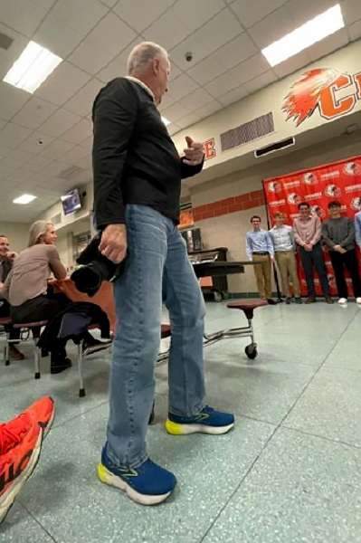 The recognition/award portion of the program began when Coach Shaklee introduced Alum Tim Haggerty '96, attorney for the Cherokee XC and Track and Field Alumnai Association, who awarded $500 scholarships to Nick Kuenkel and Bobby Poplau for their achievements in Cross Country!