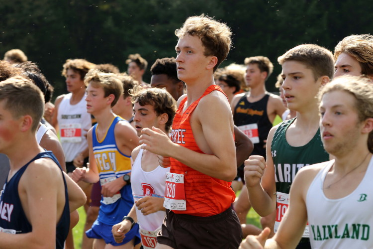 "The Varsity race went off first with 35 teams and 276 runners. Junior, Gavin Danielewicz led the team with an 8th place finish and a 32 second 5k PR of 16:33! Close behind Gavin was fellow junior, Leo Vyvyan, in 13th place with a 28 second PR of his own - 16:45! Jack Finley, Bruce Novoa and Evan Amato finished 34th, 39th and 62nd respectively, all three running new 5k PR's! Evan improved his best by 6 seconds, Bruce by 23 seconds, and Jack by 67 seconds! With a score of 151, the boys finished in 4th place, a nice result for their first time in varsity competition!