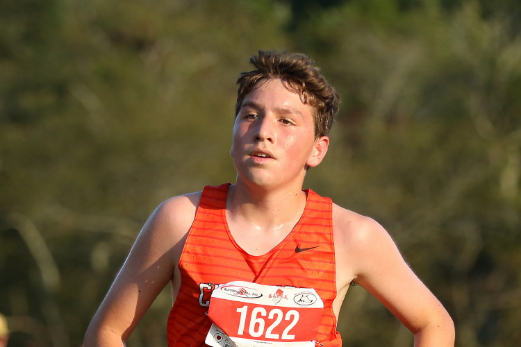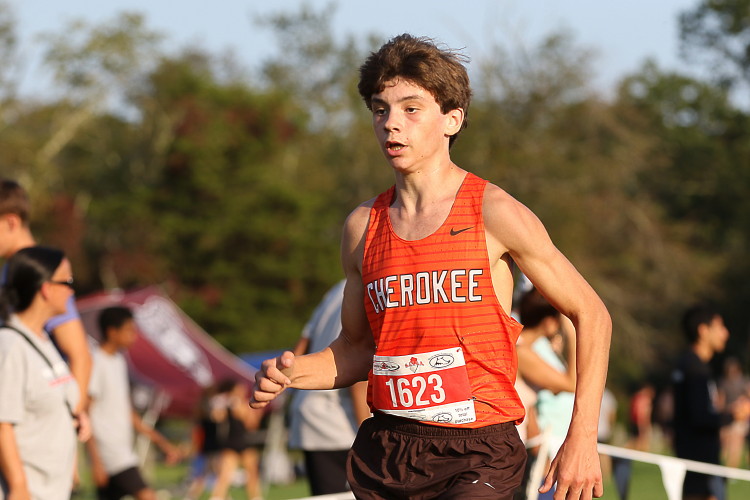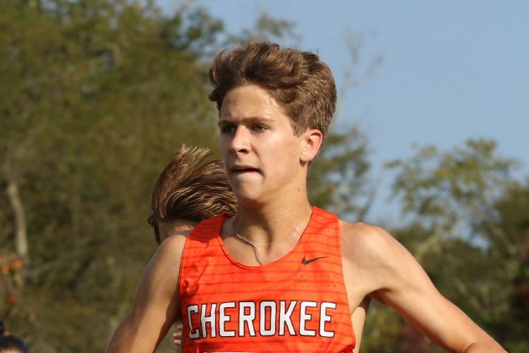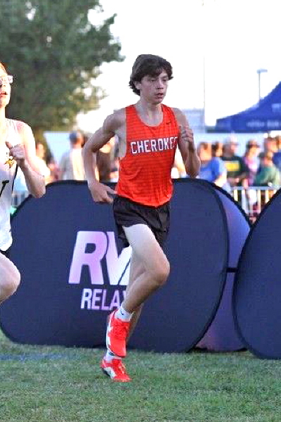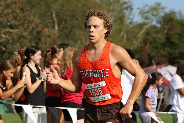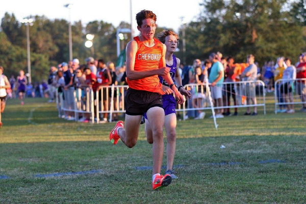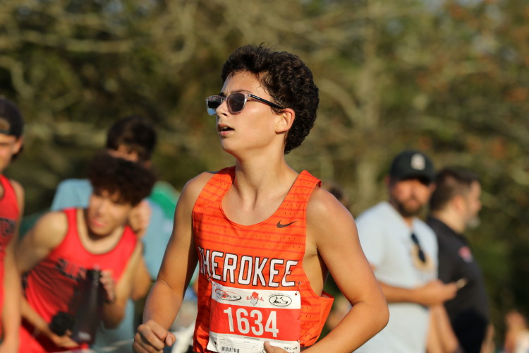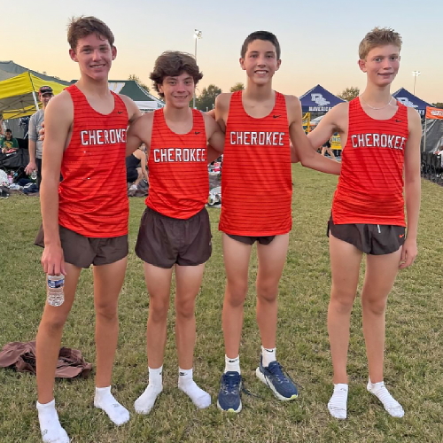 "Before the Championship race, four Cherokee athletes, junior, Jonathan Merkel, sophomore, Fletcher D'Alessandro, and freshmen, Ryan Neiderberger and JJ Duncan, competed in the extra race which had a field of 264 runners. All four acquitted themselves well with JJ leading the way in fourth! He sprinted to the front of the pack early in the race and, despite being over-extended, held off challenges from several runners in the later stages of the race to claim that fourth spot! For his efforts, the coaches named JJ the Co-Athlete of the Meet!