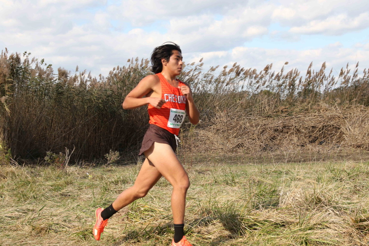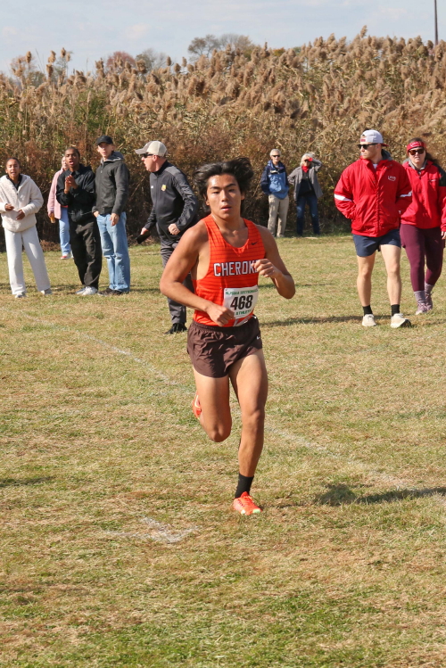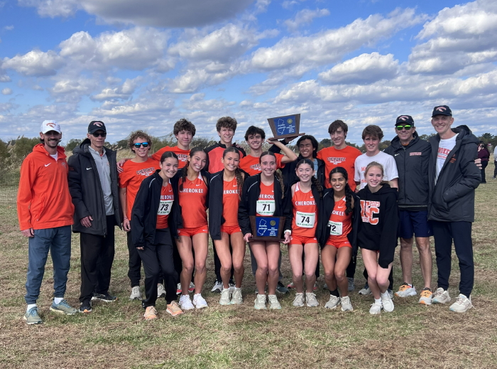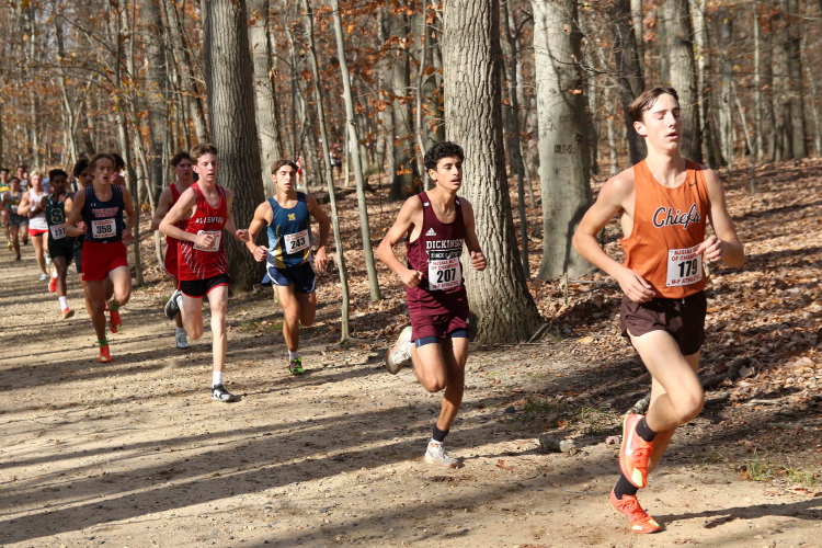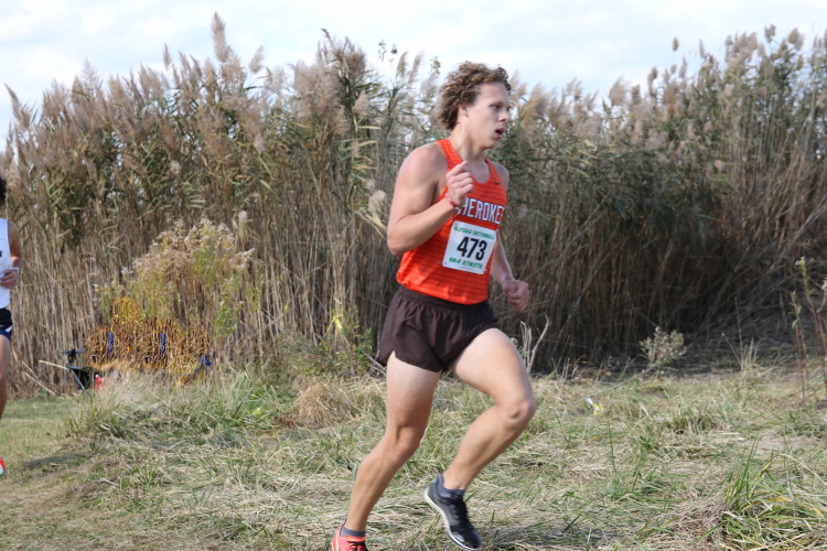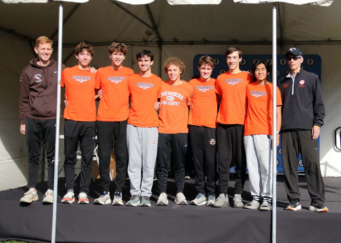 "At the finish, Ben crossed the line in 11th place (8th in team scoring) with a huge 28 second course PR of 15:53, making him the eight fastest Cherokee runner of all time at Holmdel! Jack, as always, ran an incredibly tough race to finish in 39th (28th in team scoring)! Sean ran 47 seconds faster than last week to finish as our third man (55th, 36th in team scoring) with a new Holmdel PR of 16:42! Next was Max, who didn't have his best race but still kept it together for another sub-17:00 clocking and a 79th place finish (48th in team scoring)! Five places later came Gavin who ran yet another strong race to give us 52 points and complete our team scoring at 172 points, securing a spot on the podium with a fifth place finish! To top it off, sixth and seventh men, Dom and Leo, finished 59th and 67th in the team scoring making Dom the fourth fastest 'sixth man' on the day and Leo the third fastest 'seventh man'! Despite missing Logan Bromley all season due to injury, despite Jack's illness, despite all the adversity, this group showed their character and determination by what they accomplished!