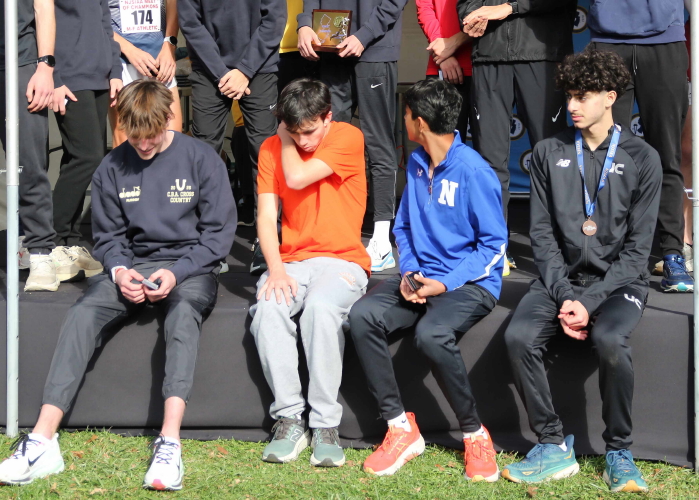"As the race began, it was hard to access how we were doing but it appeared that the boys got a decent start. With so many individuals mixed in who do not affect the team scoring, trying to gage where we were was difficult. At the mile, Ben Realley was our lead runner in around 12th-15th, with Jack about five seconds and ten places behind. Sean Sooy, Max Harada, Dom Pileri, Gavin and Leo were within about eight seconds of each other and about 15 seconds behind Jack. Our thought at this point was that we were running okay but needed to pick up some spots to make the podium. It was good, however, to see Sean up where he should be after having a bit of an off day last week.
