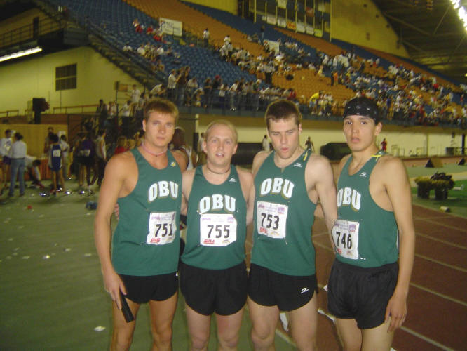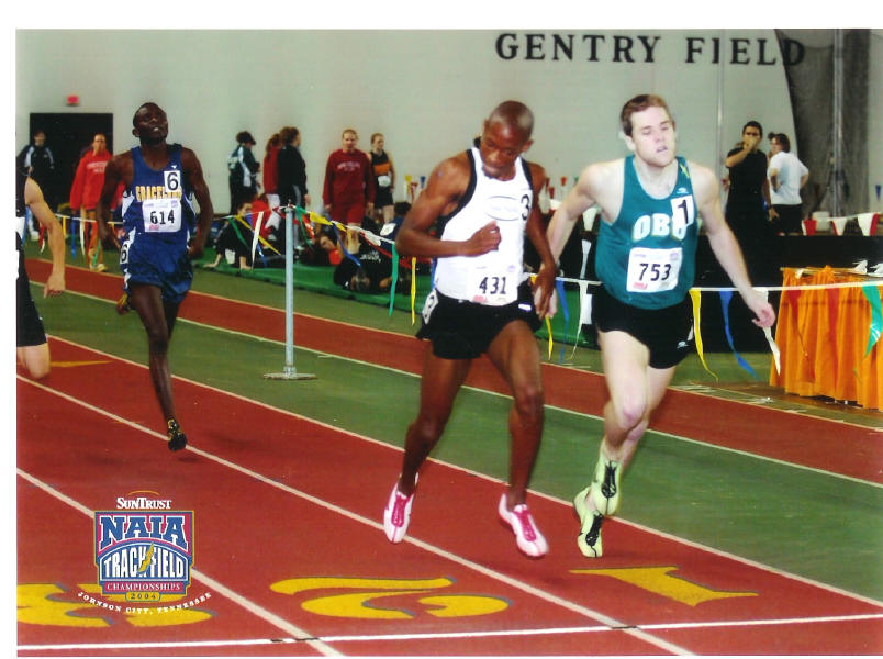 -- On May 27, 2004, Alum Dave Sitzer of Oklahoma Baptist University competed in the NAIA (National Association of Intercollegiate Athletics) Track and Field Championships at Louisville, Ky. Nursing an injury for weeks, Dave and his coach decided that he could run one good race. Entered in the 4 X 800 Relay, Dave led-off in an unofficial 1:51.3 and helped his team take second in an outstanding 7:26.98! Full results at: NAIA Championships