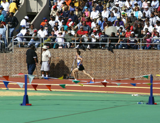 On the 4th, in the preliminary round of the 4 X 800 Relay, Dave ran in the third position and helped his team to qualify in 4th place (7:47.54) for the finals on the 5th.