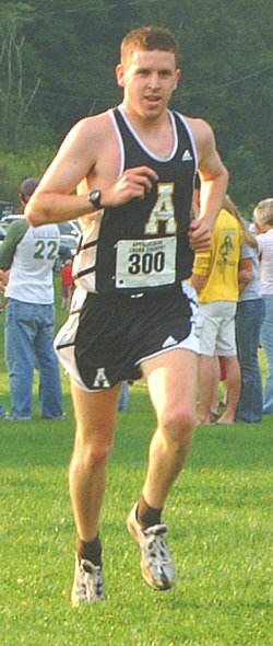 Alum Joe Halin ('00) of Appalachian State University traveled to Rock Hill, South Carolina for the Asics/Winthrop University Invitational . Joe ran a 25:12, only 6 seconds off his PR, taking 1st on his team and 6th overall in the NCAA Division I 8K race. His team took 3rd place in the race, behind two nationally ranked teams. As a result of his conference- leading performance, Joe was named the Southern Conference Cross Country Runner of the Week. Full results at: VMI. The picture below is from the front page of GoASU, the University's sports website.