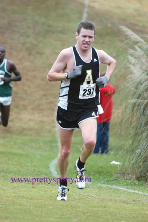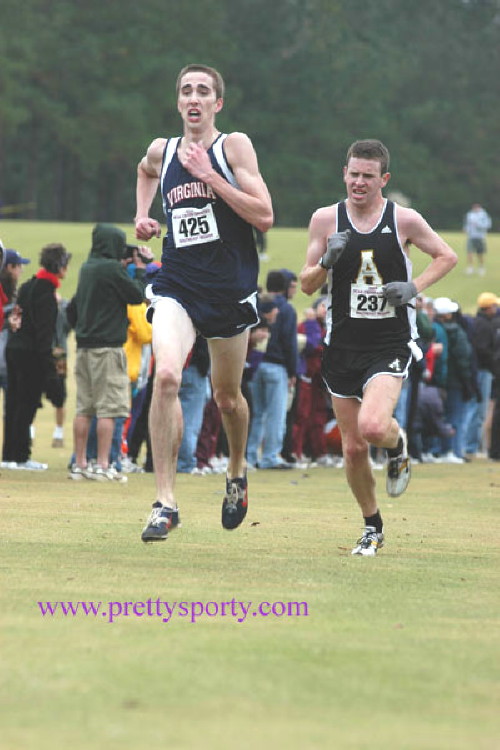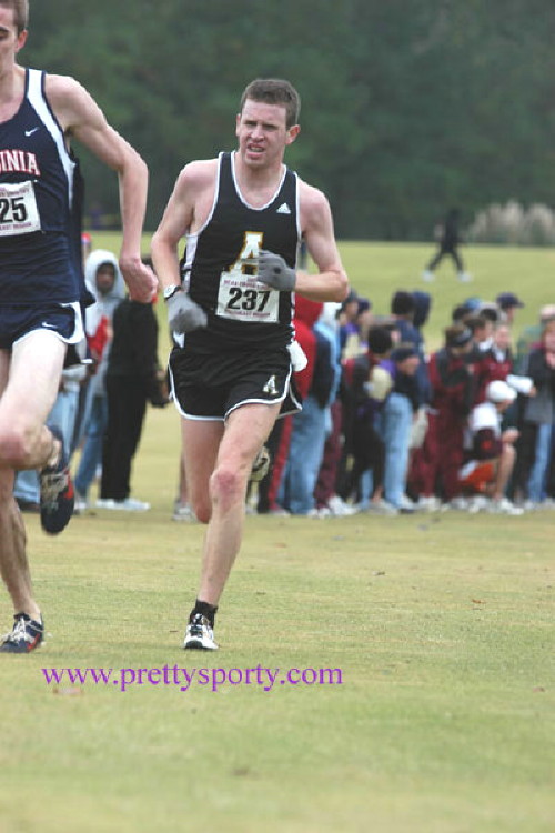 Alums Keith Krieger ('03) of Duke University and Joe Halin ('00) of Appalachian State University competed in the NCAA Southeast XC Regional at East Carolina State University in Greenville, NC. In the 10K race with 29 teams competing, Keith finished 3rd on his team and 20th overall in 30:57.6. His team finished in 5th place. Joe finished 1st on his team and 44th overall in 31:43.2, and his team finished in 11th place. Full results are available at: NCAA Sports. The following pictures were taken by Cheryl Treworgy and are available for purchase at PrettySporty.com.