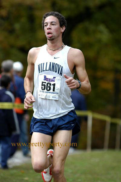 Battle of the Alums, Pt IV. Last year, recent Alums Marc Pelerin ('02) of Villanova and Keith Krieger ('03) of Duke met in three momentous contests: in Cross Country, at Great American and the Pre-Nats; and in track, at the Penn Relays. The score was 2 - 1 with Pelerin in the lead. On October 16, 2004, the two met again in the Pre-NCAA Meet, or "Pre-Nats," at Terra Haute, Indiana, and Marc extended his lead to 3 - 1 with a very convincing victory over his younger competitor. In the 8K race, Marc finished 2nd on his team and 34th overall, clocking a 24:37; Keith trailed badly, finishing 4th on his team and 106th overall while posting a 25:20. Interestingly, Chris Platt, formerly of Haddonfield and now at Tennessee, was also in the race, posting a 25:56 and finishing 106th. Full results at: Pre-Nats Results. The pictures shown below (click for larger versions) can be purchased at PrettySporty.com.