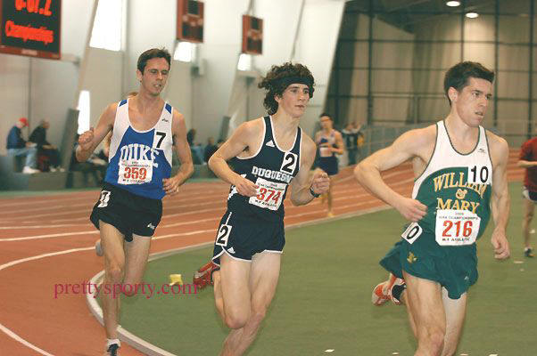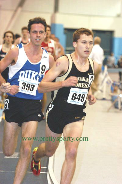 -- On February 18, 2005, Alum Keith Krieger ('03) of Duke University competed in the Atlantic Coast Conference Indoor Championships at the University of North Carolina. In a 5K race that began with 33 runners, Keith finished 8th, clocking a 14:46.04. Former South Jersey star, Adam Ambrus, now a senior at Maryland, was also in the race, finishing 22nd in 15:11.8. Complete results at: ACC Results. The following pictures of Keith were taken by Cheryl Treworgy and are available for purchase at PrettySporty.com.