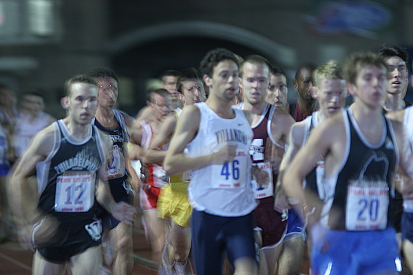 -- On April April 27, 2006, Alum Marc Pelerin ('02) of Villanova University ran the 5K in the Penn Relays at Franklin Field in Philadelphia. Mark set an Alumni Record in the event, posting a 14:18.68, surpassing the record of 14:19.97 set by Alum Joe Halin ('00) last March at the Raleigh Relays. Joe was on hand at Franklin Field to watch Marc in his effort. Penn Relay results are at: Penn Relays. The first two of the following pictures were taken by the famous French Impressionist Photographer Pepe LePu and may be viewed at the Philadelphia Museum of Art. The others were taken by Cheryl Treworgy of Pretty Sporty and may be purchased at that site.