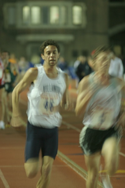 -- On January 13, 2006, Alum Marc Pelerin ('02) of Villanova University came off the injury list in a big way when he competed in the Gotham Cup Meet at the Armory in New York City. Marc ran in the Seeded 1600m Race, helping his team win the meet by clocking a 4:13.99 and finishing in 4th! GO MARC! Full results at: The Armory. This picture of Marc was taken by Mary DiBiase Blaich of Winged Foot Fotos and may be purchased at that site.