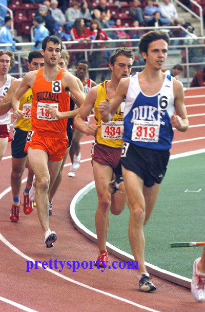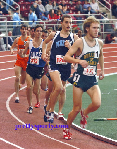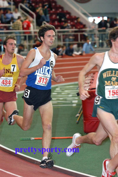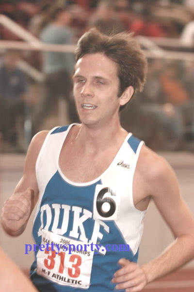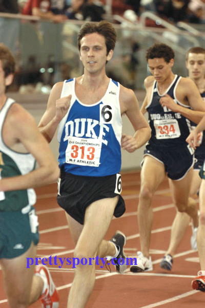 -- On March 5, 2006, Alum Keith Krieger ('03) of Duke University competed in the 2006 IC4A Indoor Track and Field Championships at Boston University. Keith ran a new indoor PR in the 5K, dropping almost 10 seconds from his previous indoor record! Keith posted a 14:28.54, taking 11th overall, and placing 5th on the school's "all-time" list! That's only a few seconds from his outdoor PR of 14:26.51, set at the IC's in May, 2005. For complete results: IC4A Results. To see Duke's list of their season's top performances, check out: Go Duke. Below, the first nine pictures of Keith were shot by Cheryl Treworgy of Pretty Sporty and may be purchased at that site. The last picture appeared with Duke's on-line report on the IC4As at: Go Duke