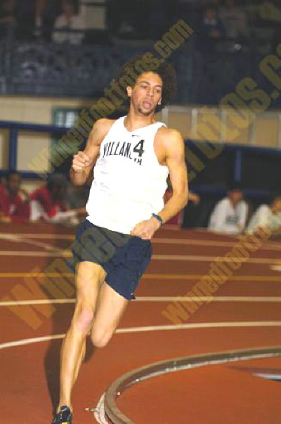 -- On February 18, 2006, Alum Marc Pelerin ('02) of Villanova University competed in the Big East Conference Indoor Track and Field Championships at the University of Akron in Ohio. In the Mile prelims, Marc finished 5th in his heat and 9th overall, clocking a PR time of 4:09.59! He later clocked a 3:02 in the 1200m, helping his team to a 9:51.73 and 2nd place in the Distance Medley! [An aside here: the meet record in the DM is held by Villanova which, in 1984, ran a 9:38.38 with now-coach Marcus O'Sullivan as the anchor!] The following day, February 19, 2006, Marc finished 9th in the Mile finals, posting a 4:12.71. The picture below was taken by Andrew Blaich of Run Nova and originally appeared on that site. Full results at: Delta Timing.