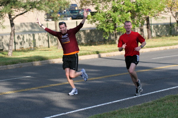 -- On October 23, 2010, Alum Marc Pelerin '02, an Assistant Coach at Cherokee High School, continued his winning ways at the Family Service 5K Run in Lumberton, NJ. Marc clocked a 15:32 (4:59 pace), taking 1st place and edging out Ted Callinan, the much-older brother of Cherokee's Chris Callinan. Picture provided by Mom Inc. . . . Photographer of the Stars! Details at: L & M Results.
