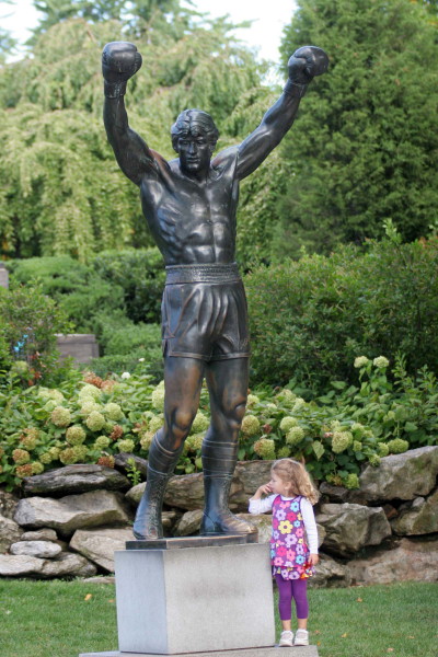 Also of interest, a few pictures taken at the same time. Parent Alum Mike McCarroll enroute to the finish line (photo by Alum parent Don Henriksen). A picture of Boat House Row with hot air balloon; one of Alum Joe Halin '00, of the Moorestown Running Company, as Rocky? And then an accompanying picture showing a similar likeness of Joe? By the way, Joe is training for the Philadelphia Marathon in November. (As an aside, you have to love the "art critic" standing below the statue!)