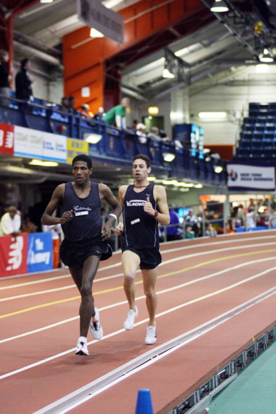 -- On January 20, 2011, Alum Marc Pelerin '02 now an Assistant Coach at Cherokee, accompanied by his personal chauffeur/photographer and his coach, traveled to the New York City Armory for their Thursday Night At the Races. Competing in the 5K, Marc finished 2nd and ran a nice, evenly-paced 14:49 with mile splits of 4:41, 4:46, and 4:47; basically 35's or 36's for 25 laps. Marc has upped his mileage beyond anything he has done in the past and he expects that will be reflected in his racing this year! Results at: MileSplit, NY.