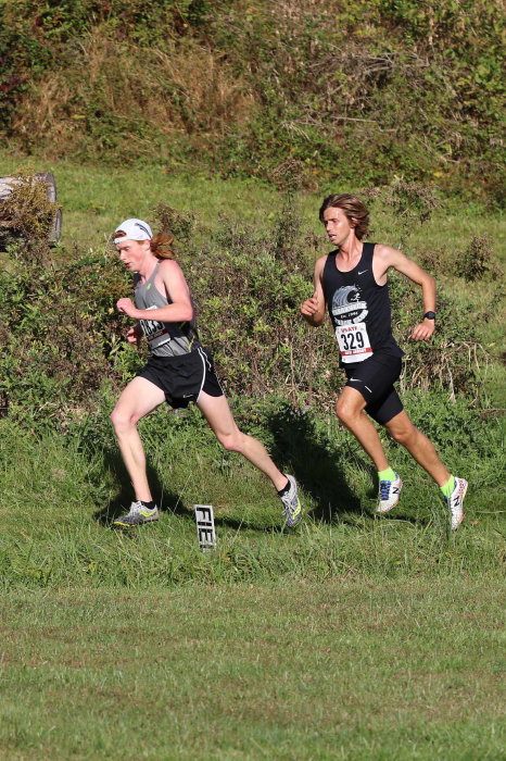 -- On October 22, 2017, Alum Nick Falk '17, formerly of Colorado State University and looking forward to admission to The College of New Jersey, raced the USATF NJ 8K Cross Country Championship at Deer Path Park in Flemington, NJ. Nick finished 6th in the race while clocking 25:56 (5:13 pace)! Details at: Compuscore. Our photographer was at the event! The athlete seen running with Nick in several of the pictures below is Eric DuBois, Assistant Coach at Rowan University and counselor at RunningWorks Camp!