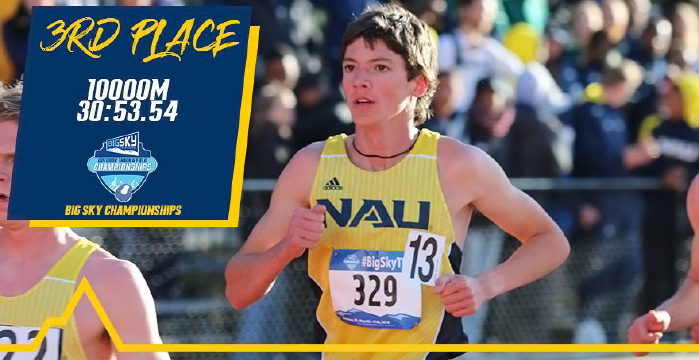 -- On May 10, 2018, Alum Jack Shea '17 of Northern Arizona University, competed in the 10K at the windy Big Sky Conference Championships at the University of Idaho. He finished 3rd, clocking 30:53.54 (pace: 4:59). He scored 6 points for the team that eventually won a close victory! BTW, Jack still has a bit to go before he surpasses the Cherokee Alumni record of Keith Krieger's '03 29:53 set while he was at Duke! GO JACK! Pictures from NAU's twitter account! Details on: Finished Results.