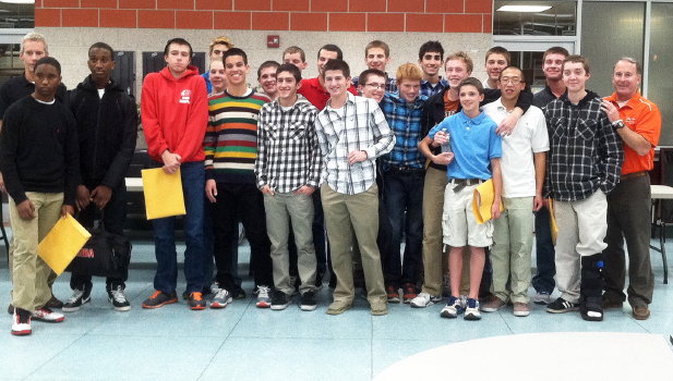 On Tuesday, December 3, 2013, Cherokee's Cross Country team held its annual awards dinner at the school. There the team, coaches, families and friends, enjoyed a meal together, applauded the accomplishments of the team this season, and bid farewell to the graduating seniors. Highlights included the great meal provided by the parents and the Coaches' awards, including the Most Valuable, Most Improved, and the Unsung Hero. Coach Shaklee's remarks are recounted in Coach's Message.