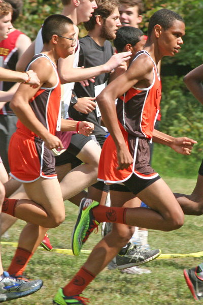Originally this meet was designed to test the runners' condition before they entered "the real season" but lately it has become much more than that! The races are shorter -- only 3200m -- and, while competitive in nature, the whole experience was supposed to be more lighthearted and enjoyable than the meets of the regular season. But no one wants to lose anything so it has become something of an all-out sprint -- especially in the first 800m -- over 3200m! This year, for the 2500 runners who raced the Middle School and High School courses, it appeared even more so!
