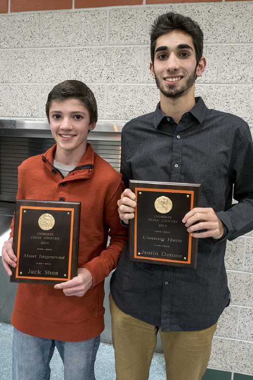On December 2, 2014, Cherokee's Cross Country team held its annual awards dinner at the school. There the team, coaches, families and friends, enjoyed a meal together, applauded the accomplishments of the team this season, and bid farewell to the graduating seniors. Besides the meal provided by the parents, the highlight of the evening was the Coaches' awards, including the Most Improved, Most Valuable, and the Unsung Hero. Coach Shaklee's remarks were not recorded but his written message is here.
