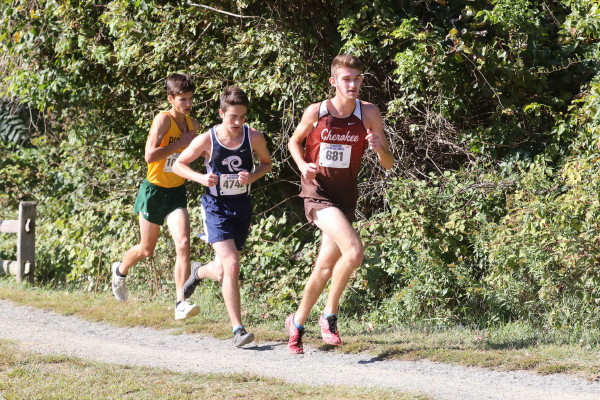 The Freshmen got things off to a nice start, placing 9th in a field of 24 teams despite the fact that one of the top runners, Patrick Ditmar, is out with an injury. Connor Jacob led the way with a strong 4th place finish in the field of 284 runners! His time of 11:33 is one of the fastest ever by a Cherokee athlete and only 17 seconds off of the Cherokee record set three years ago by Chris Spisak! Tommy Bromley had a solid race in 20th with a time identical to that run by Ethan Wechsler when he was a freshman! Ben Hackney had another good outing finishing 38th in the deep field and Danny Hassall ran his best race yet to place 86th with a time close to what Ty Jackson ran as a freshman!