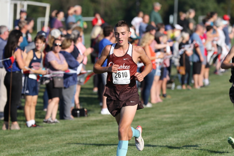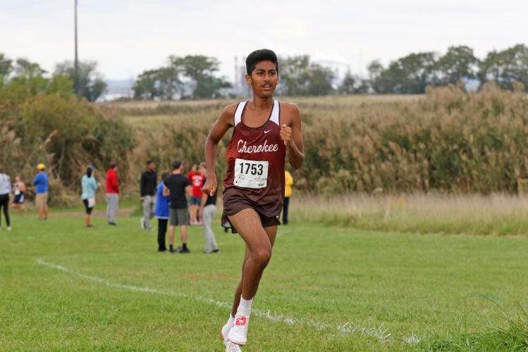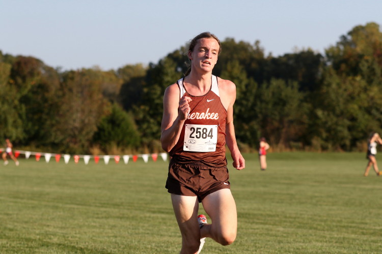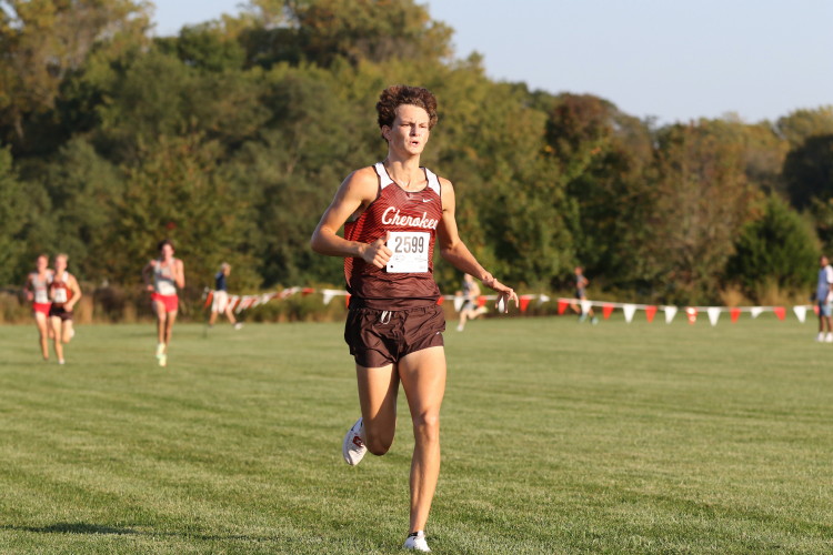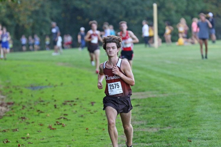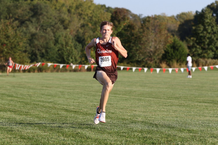 "The Junior Varsity Race went off first and the result was very impressive! Eleven of the top twelve finishers were Cherokee runners, led by individual champion, Andrew Free! Behind Andrew, in close succession, were Aiden Dickinson - 2, Joe Hough - 3, Luke Reistle - 4, Lucas Hatch - 5, Matteo Evola - 6, Zach Ciabattoni - 8, Evan Pawlik - 9, Danny Hassall - 10, Josh Pawlik - 11 and Enzo Corona - 12! In addition, a special shout out goes to Freshman, Josh Lowrey, who set a three minute PR on the hot, humid day! The team scored the best-possible 15 points, shutting out the rest of the county!