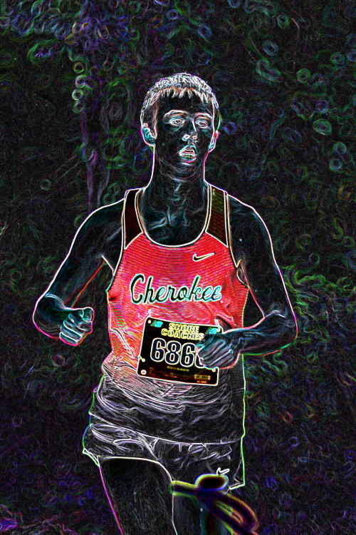 After shooting more than a thousand pictures at the meet, and in the middle of the penultimate race, our photographer's camera suffered a very unusual glitch. He responded rapidly, following the standard procedures for fixing a glitch, and he inadvertantly erased or misplaced all of his previous pictures . . . including those of our Cherokee athletes!
