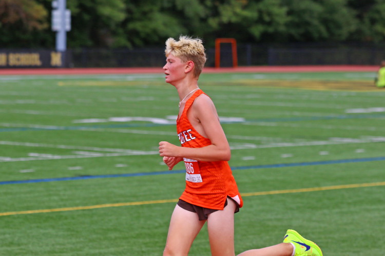 A large group of six or seven teams raced, most represented by their top Varsity runners and not all went well for our boys! Perhaps the most disappointing was the disqualification of our top runner for "cutting the course." Colin Dickinson raced pretty well but somewhere along the course an official declared a DQ and he was removed from the results. Following Colin was Ethan Amato, who finished 12th in 19:22; Dylan Weiner was 21st in 20:05; Jonathan Merkel was 60th in 23:50; and Fletcher D'Alessandro was 81st in 26:39. There were more than 100 athletes in the race but not all coaches recorded their team's performances, which is not required at Batch Meets.