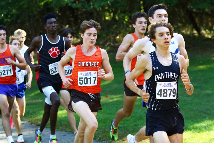 "In the Varsity A Race, the highlight was definitely the performance of freshman, Jack Tindall, who lit up the Holmdel course! Jack's time of 15:55 knocked twenty seconds off the old freshman record set by Craig Forys in 2003! It was also 44 seconds faster than the previous Cherokee freshman record of 16:39 set last year by Ben Realley (who recorded a one-second PR of 16:38 for ninth). The rest of the Varsity seven struggled to find their rhythm and will undoubtedly run much faster when they return to Holmdel in November! Still, the team managed to finish Second behind 2023 State Group 4 Champs, Westfield!