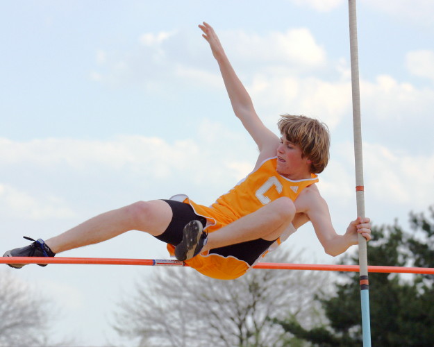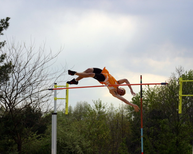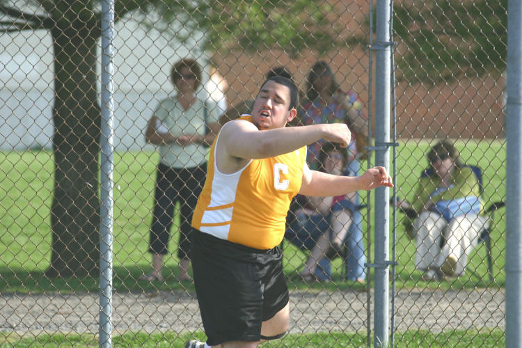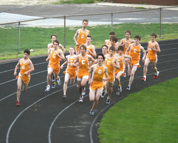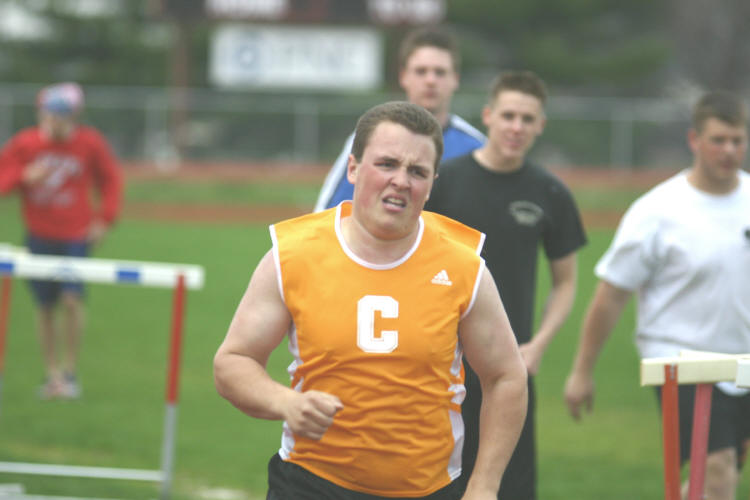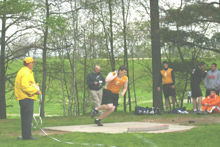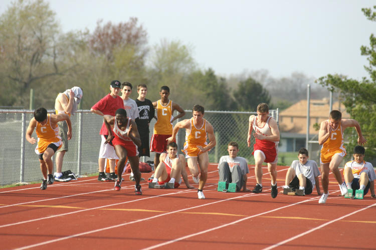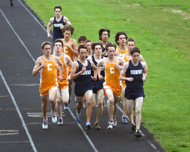 On April 27th, Cherokee met another of its District rivals, Shawnee High School, in a close-fought meet. It started badly as Shawnee scored big points in the Long Jump and Jav but, as the meet progressed, that gap was soon closed. Sprint star Alex Whirledge took 1st place in the 100, 200 and 400 and anchored the winning 4 X 400 relay; and other key points were scored by hurdlers John Convery and Brett Wintermute. The distance squad almost swept the 800, 1600, and 3200, with Will Andes taking 1st in the 800, and Tom Yersak winning both the 1600 and 3200. Tom Nessler took 2nd in the Disc with a throw of 140' 5"; and John Kerbaugh took 2nd in the Shot with a vastly improved PR of 45' 4". And, finally, a totally unexpected 2nd and 3rd in the TJ by Freshmen Steve Watson and Adrian Lu helped to raise the final score to 77 - 63.