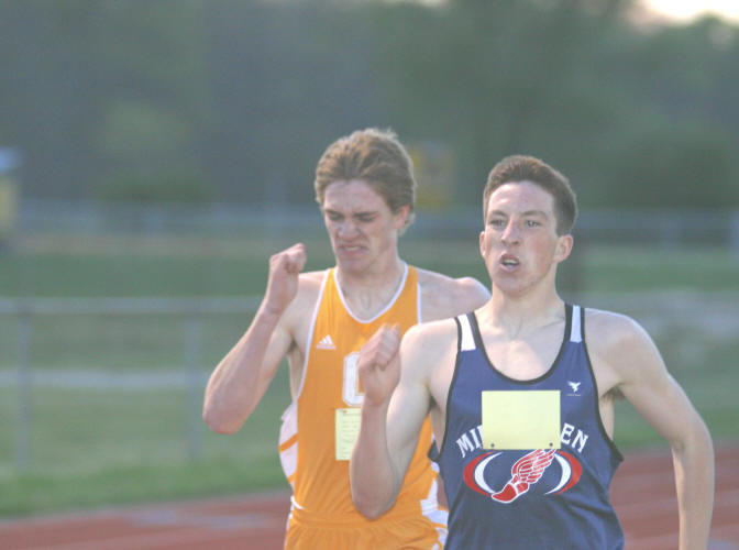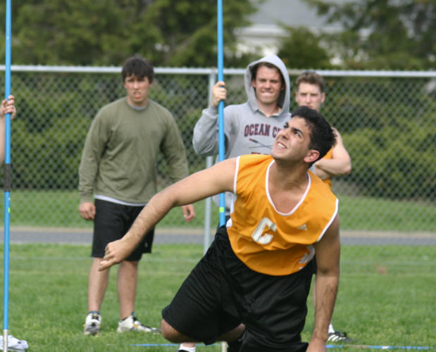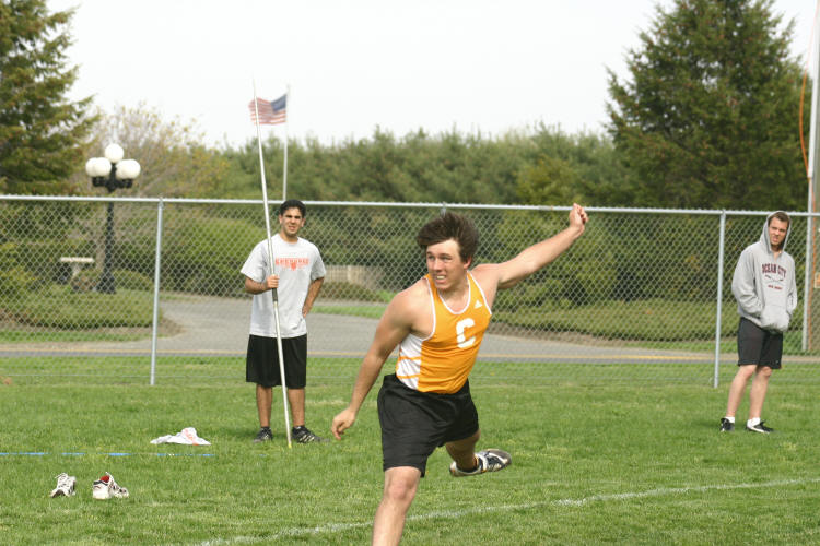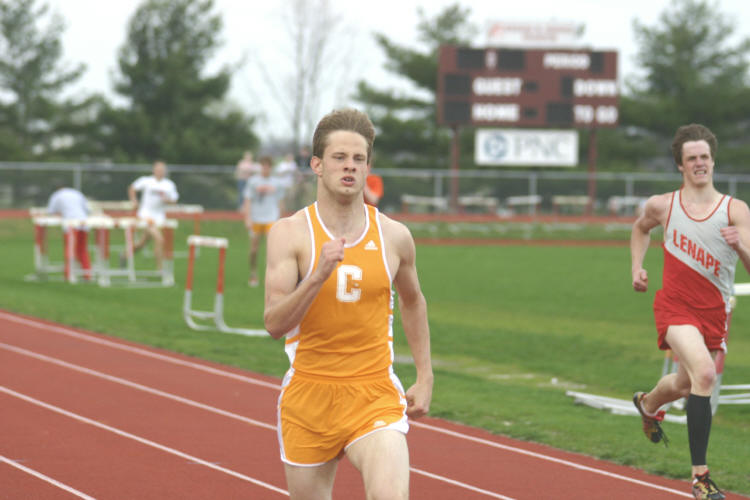 On April 19th, a very hot and windy day, the Chiefs met District rival, Lenape High School, in a very tough meet. The final score of 79 - 61 is deceiving and fails to suggest how close the meet was until the final minutes! Highlights included a strong showing in the weight events, with McHugh and Baker throwing PR's in the Jav, Addezzio and Kerbaugh leading the sweep in the Shot, and Nessler and Ajderian leading the sweep in the Disc. In addition, Brian Sand led a sweep in the Vault; Tom Yersak ran especially well in the 1600m (2nd) and 3200m (1st); Brett Wintermute had a nice PR in the Intermediate Hurdles (1st); John Convery had two PR's in the Highs and the Intermediates; Alex Whirledge, coming back from a hamstring problem, won the 200m and 400m; Joe Scialabbo, out for more than a week, took 3rd in the 100m; and Mike Candy, just back from a stress fracture, won the 800m!
