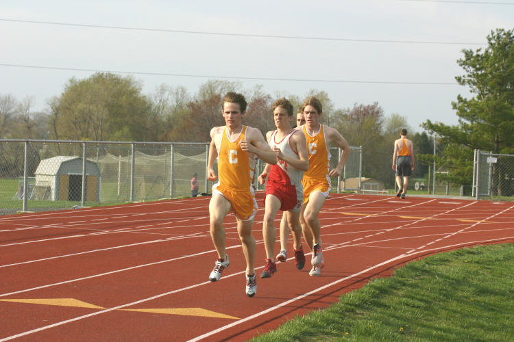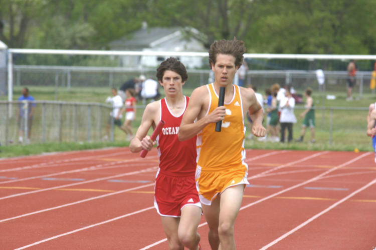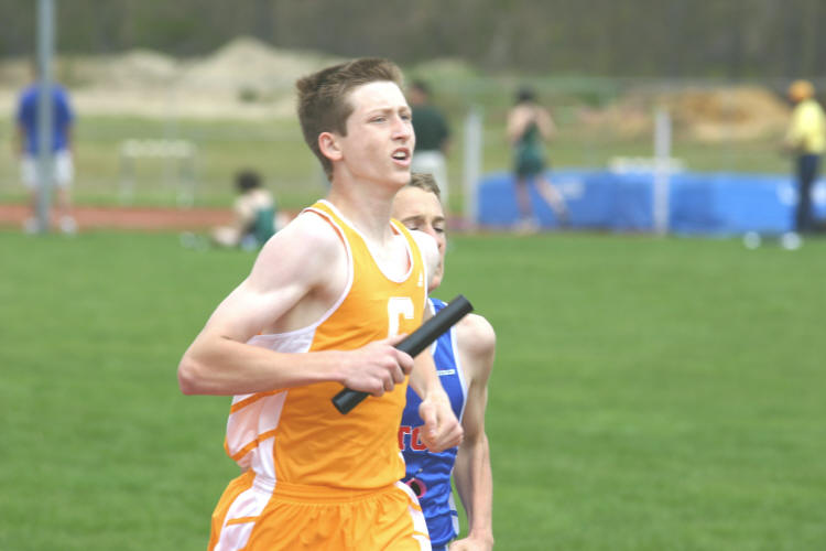 On May 1st, Coach Shaklee rested many of the top Varsity and gave a chance for the lesser runners to make their marks. The Frosh 4 X 800 team of Smith, Cunningham, Maneval and Foley took 1st place, with the last three runners setting PR's. Another Freshman team of Lu, Watson, DeCaires and Shapiro took second in the 4 X 100. And Freshmen Steve Watson and Adrien Lu won the Freshmen Triple Jump, with both athletes in the high 36's! Other highlights included Sophomore Rich Nelson (4:42) and Junior Matt Dolan (4:45.9) setting PR's in the 4 X 1600; and the Varsity 4 X 200 team of Scialabbo, Smith, Lim and Whirledge finished 3rd.