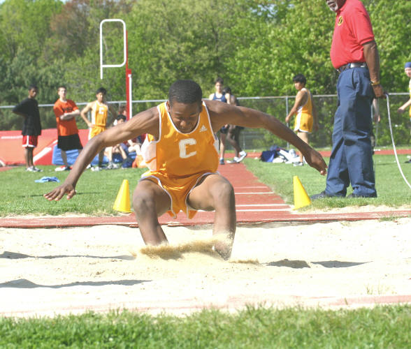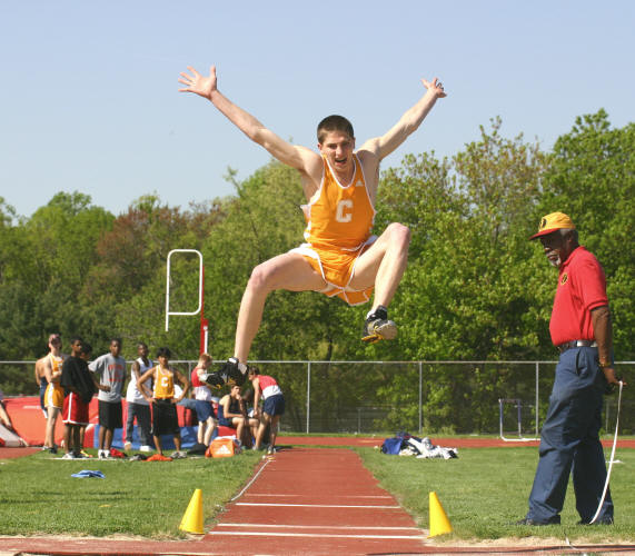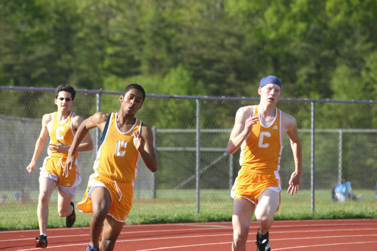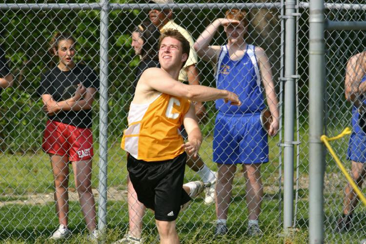 On May 11th, the Cherokee Track and Field team hosted the 8th Annual Cherokee Invitational, a meet designed for "novice" athletes who probably will not qualify for Sectional or Group State meets. Several of our athletes competed in the meet and made significant marks for themselves. For example, Vin Marziano finished 1st in the 1600m (a PR time of 4:51.36), Andrew Medvec took 1st in the Disc (112' 6"), and Adrian Lu took 1st in the Triple Jump (17' 9"). Steve Watson took 2nd in the Triple Jump (37' 1/4") and 3rd in the Long jump (17' 9"). Kevin Cannon took 2nd in the Shot (36' 9") and Charlie Spencer took 3rd (36' 6"). Rich Nelson ran the 400 in 55.86 and took 3rd, and the 4 X 400 relay team of Eric Sczepanski, Steve Nelson, Matt Raychert and Rich Nelson took 3rd in 3:48.9.