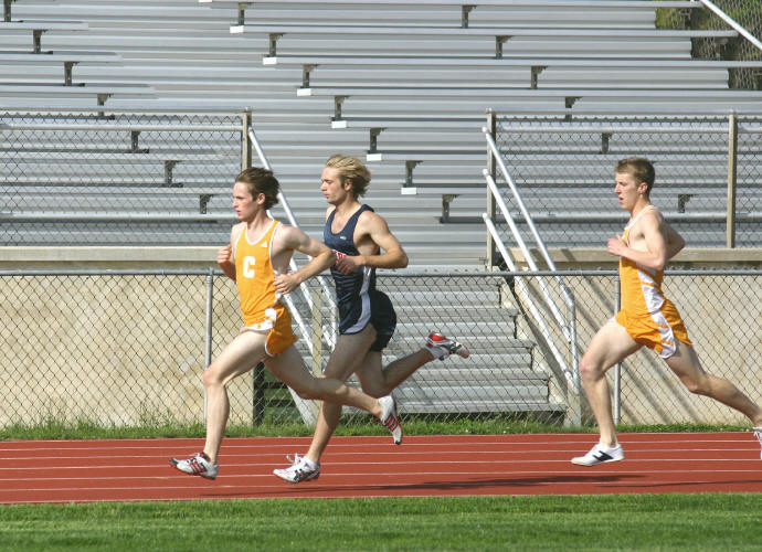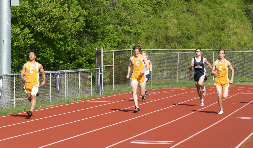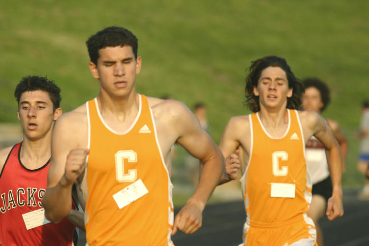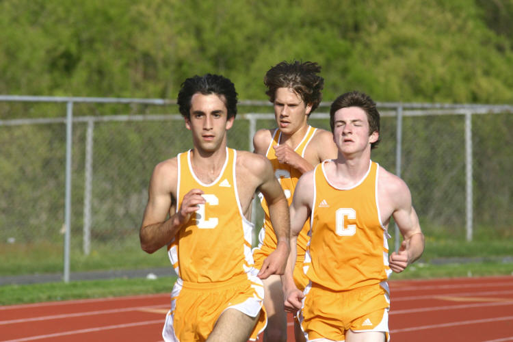 Just to illustrate the effect on runners when they are at their peak in the season, and when they are relieved of stress in the first half of a race, eighteen Cherokee runners ran PR's in their events. Top performances came from Tom Yersak (2:00.6) and Sean McLaughlin (2:01.3) in the 800; Will Andes (4:27.7) and Mike Candy (4:28.6) in the 1600; and Matt Dolan (9:55.6) in the 3200!