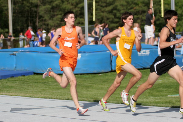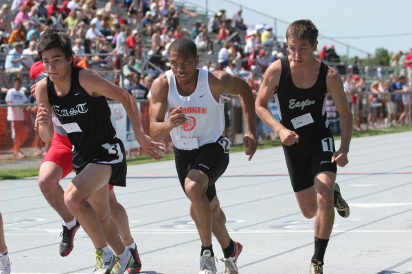 On Friday, two of Cherokee's best athletes qualified for the State Groups! In the 1600m Run, Steve Burkholder took 4th overall, finishing with a furious 60.6 last lap, and dropping another 3 seconds off his PR (4:22.83)! That time puts him in 6th place among all former Cherokee runners of the 1600m! And in the 100m Dash, Will Rapp took 5th overall, while sprinting a FAT PR of 11.04 in the Finals of the event!