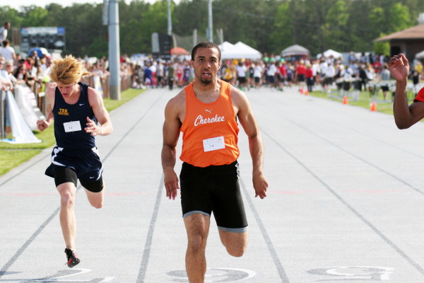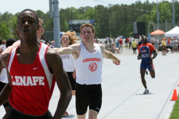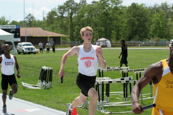 On Saturday, the weather was perfect and all four Cherokee competitors advanced to the Meet of Champions! Early in the meet, Major Mobley was off his time of last week but qualified as a "wild card" in the 110m High Hurdles! Will Rapp took 6th in the 200m Dash and advanced; and both High Jumpers, Justin Turner and Ed Kramer advanced with Justin taking 2nd (6' 6"), and Ed (6' 2") tying with seven others in 5th place!