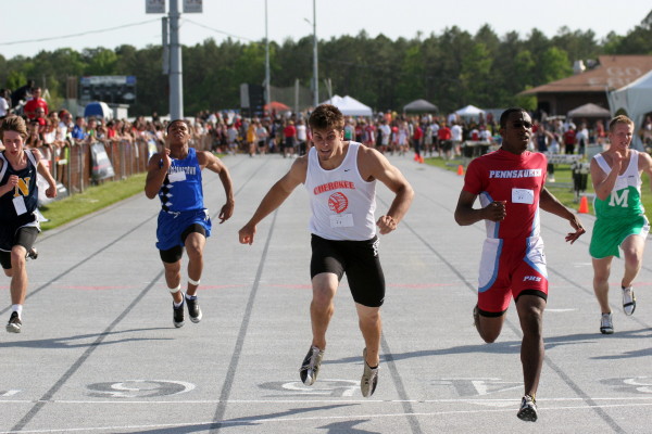 On Thursday, June 4th, 2009, the rain-delayed New Jersey State Meet of Champions was contested at South Plainfield, and once again, Will Rapp provided the Cherokee highlight of the meet! In the 200m Dash, Will ran a school-record 22.13 -- what a way to end the season! -- and tied for 8th place, the last place to receive a medal at the Meet of Champions! Unfortunately, since the state is so impoverished and could not afford to award two 8th place medals, the tie was broken by 1/1000th of a second and Will had to settle for 9th place! Hurumph!