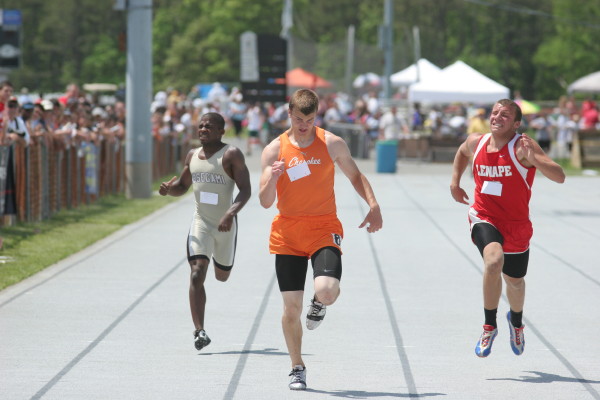 On Friday and Saturday, May 29th and 30th, 2009, the team's qualifiers from Sectionals returned to Egg Harbor Township H.S. for the New Jersey Group IV Championships: Major Mobley in the 110 High Hurdles; Steve Burkholder in the 1600m Run; Will Rapp in both the 100m and 200m Dash; and Justin Turner and Ed Kramer in the High Jump. When the dust cleared, or perhaps more appropriately, when the rain fell (Friday) or when the sun fell (Saturday), four of the five had advanced to the State Meet of Champions!