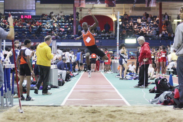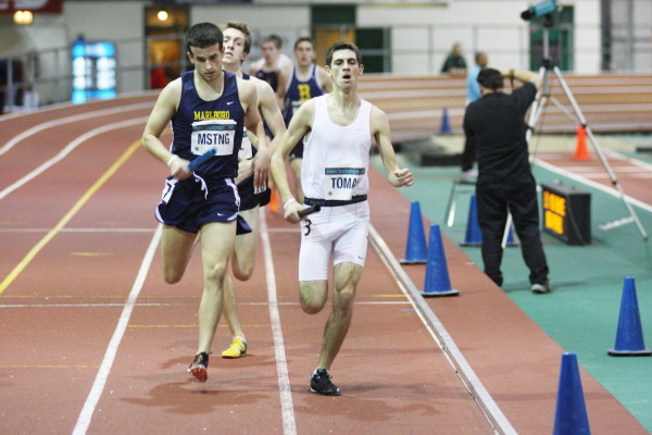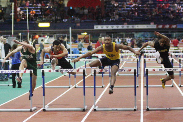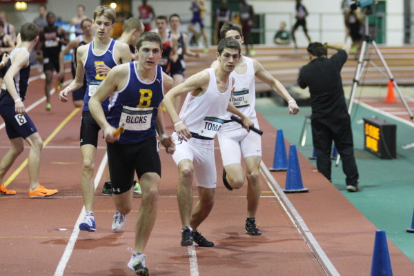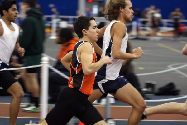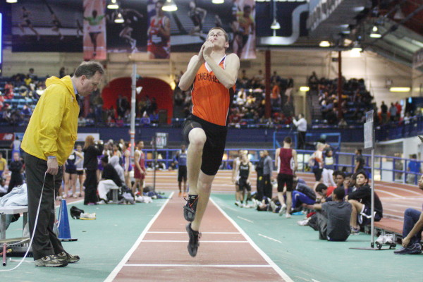 The pictures are a little rough because it was relatively dark in the Armory but this group shows a series of Darren McCluskey pictures through the Trials, Semi-Finals, and Finals in the 55m Dash; Brian Regensberg in several Long Jumps; and the four-man Distance Medley squad.