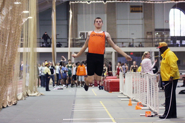 On March 1, 2011, several of Cherokee's top athletes traveled to the New York City Armory for the 74th Annual Eastern States Championships. Hurdler Darren McCluskey continued a series of very strong performances in the 55m High Hurdles when he advanced through the Trial's, the Semi's, and then took 4th overall in the Finals, running his second fastest time ever in the event! In the Distance Medley, the team of Ty Somers, Brandon Rapp, Ross Staudt, and Shawn Wilson didn't fare as well but Ross PR'd in his 800m split and Shawn came within a few seconds of his 1600m PR in his first mile race since last Spring. Finally, in the 4 X 200m Relay, the team of John Barr, Drew Viscidy, Darren McCluskey, and Brian Regensberg set a season best time! Further details at: MileSplit, NY.