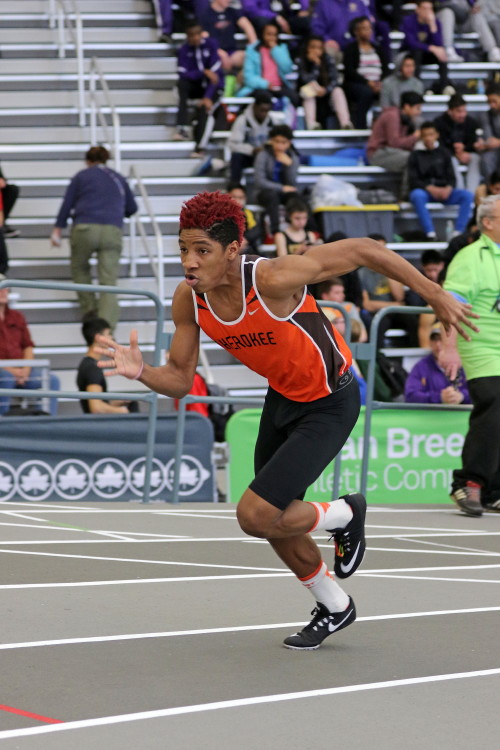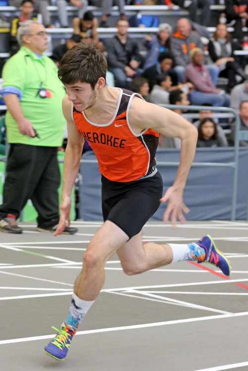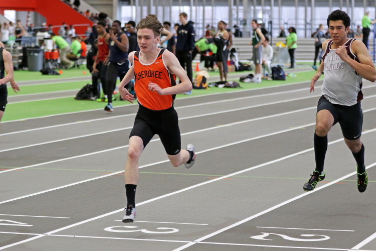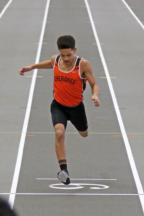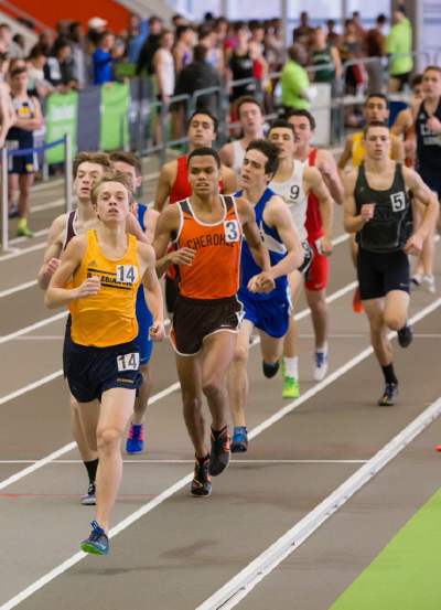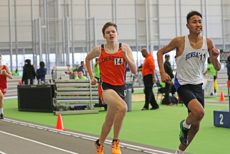 On January 14, 2017, several of Cherokee's athletes traveled to the Bennett Center for the Olympic Conference Meet. They were slightly discouraged going into this meet because a number of the team's top athletes were dealing with minor injuries and unable to compete. However, that feeling of soon disappeared when, in the first event, senior Ryan Belz set a PR in the 55 hurdles! It was his first time under 10 seconds and it topped his previous best by almost three-tenths of a second! Also in the 55M High Hurdles, Becker Elbanna ran his second fastest time of the season! Becker finished in 11th place and Ryan was right behind him in 12th.
