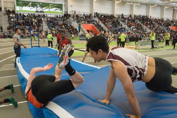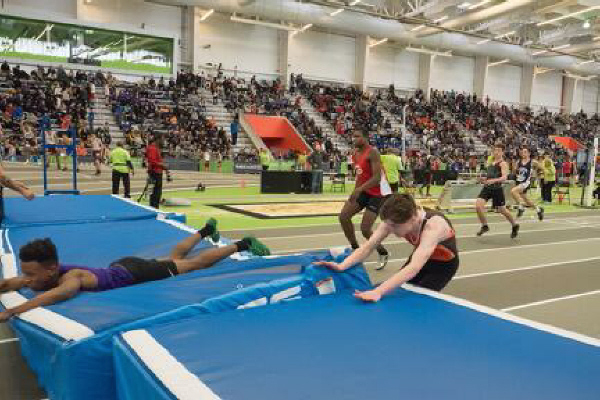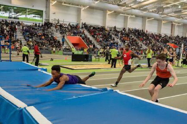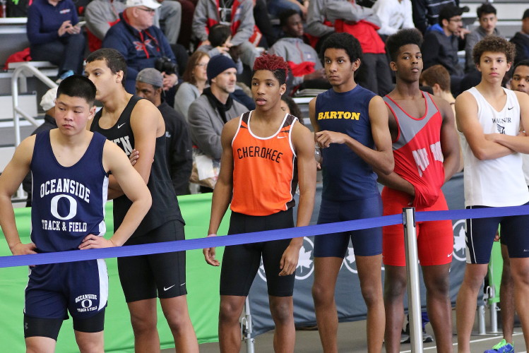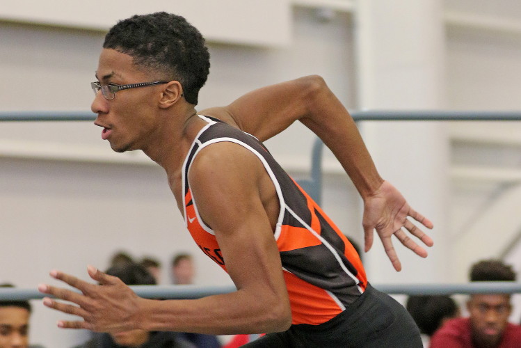 The meet shifted gears quickly going from a distance race to the 55 High Hurdles where sophomore Tray Cabbagestalk ran 9.10 for 10th place. This was a significant PR for Tray as he bested his previous mark (9.44) by over three-tenths of a second!
