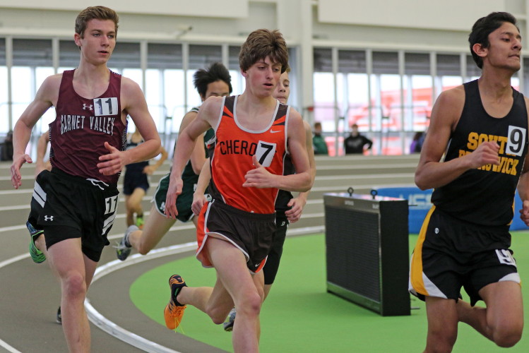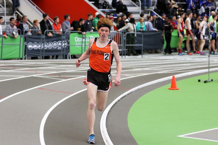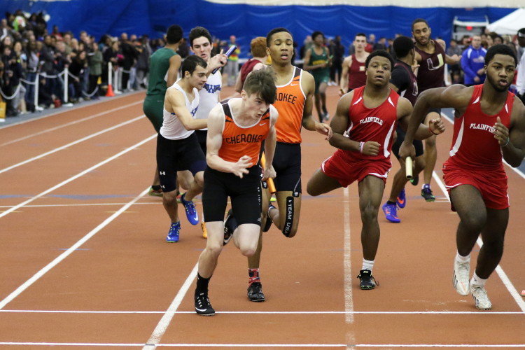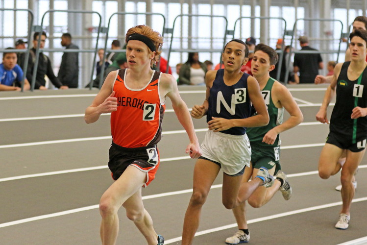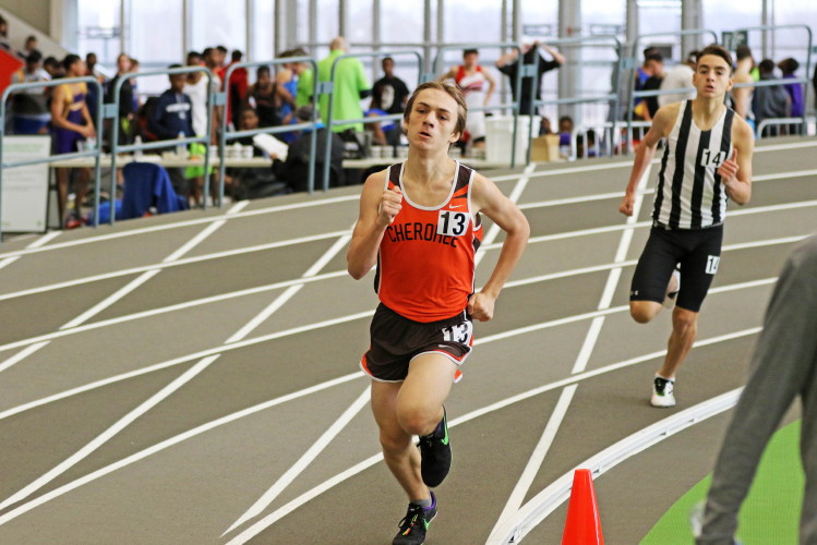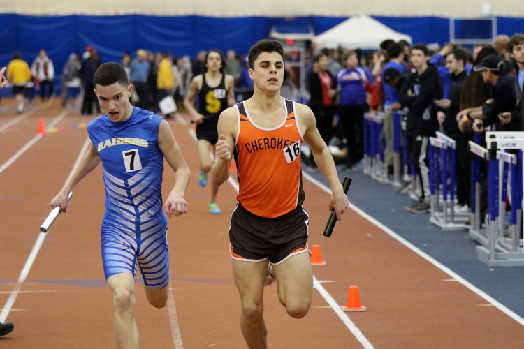 The day started with the Distance Medley Relay. Senior Nick Falk handed off to junior Kevin Milligan, who handed off to senior Brendan Falzone, who passed the baton to freshman Chris Spisak. Their total time of 11:00.97 was good for 10th place and it was the best Distance Medley Relay of the year. In addition, the team's anchor, Chris Spisak, ran a 6-second PR, dropping his time to an impressive 4:37! Finally, looking back, it was even more special because it was the fastest DMR a Cherokee squad has run indoors since a group of Chiefs ran 10:52.36 in 2013!