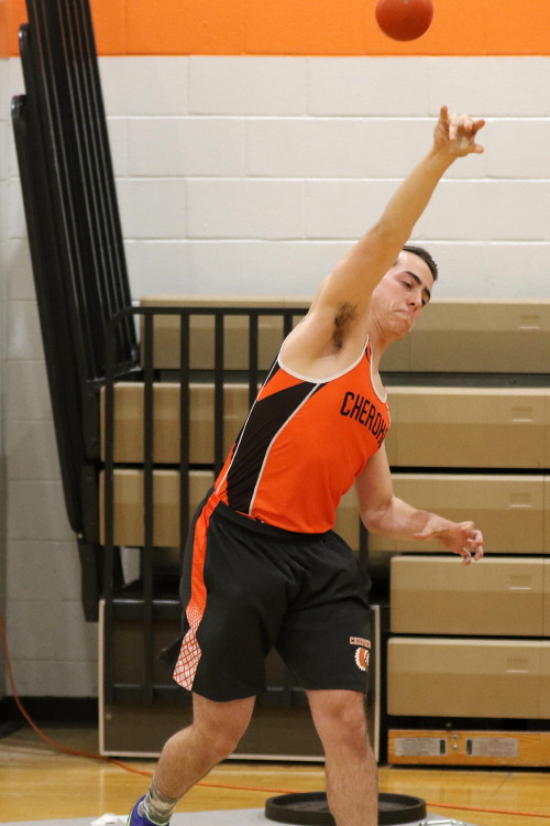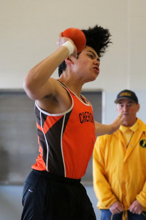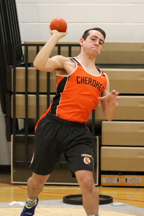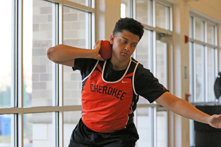 Cherokee had just four guys in action in the field events. Sophomore Andrew Elsey (5' 6") and senior Michael McShane (5' 0") competed in the high jump; and senior Adonis Giovetis (37' 9-1/2") and sophomore Luch Pizarro (35' 9-3/4") competed in the shot put.